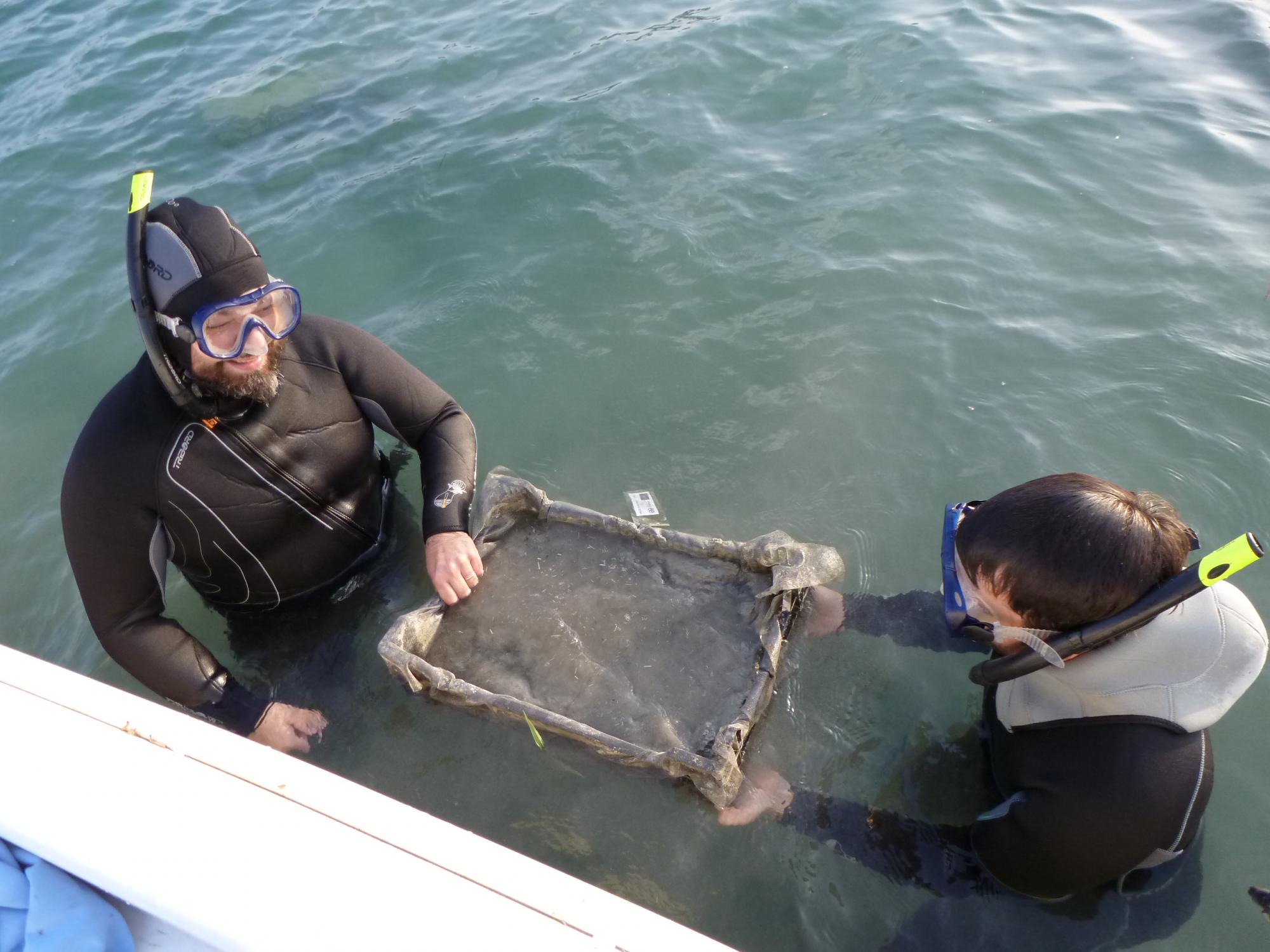 | Trabajos para repoblar con bivalvos de agua dulce el lago de Banyoles, en la provincia de Gerona (foto: Consorci del Estany). |