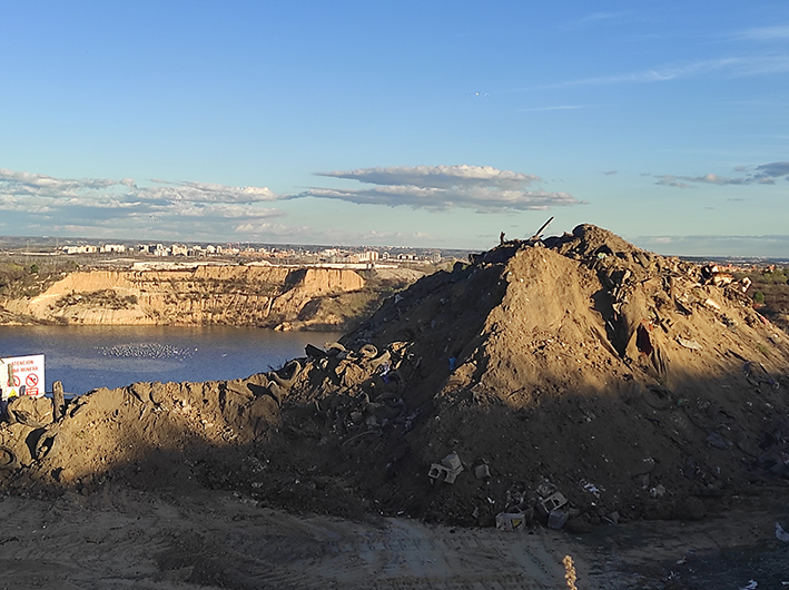 Talud de la laguna de Ambroz (Madrid) donde se halla la colonia de abejaruco, utilizado para el vertido de escombros (foto: SEO/BirdLife).