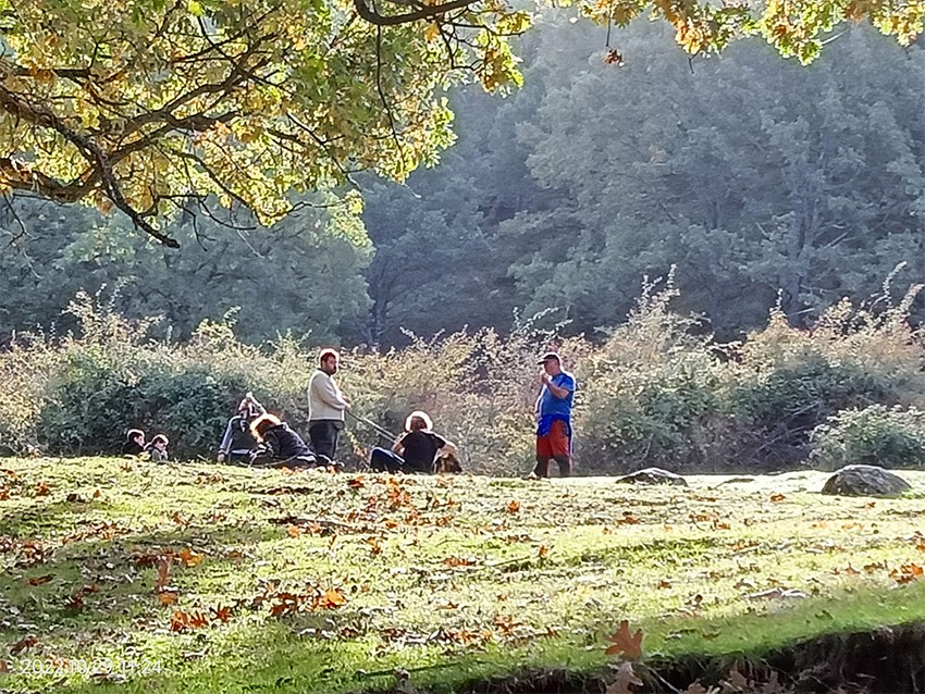 Varios visitantes hacen un picnic en un claro del Castañar (foto: Plataforma Salvemos el Castañar de El Tiemblo).