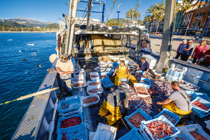 Clasificación de las capturas a bordo de un arrastrero en el puerto mallorquín de Andratx (foto: Tolo / Adobe Stock).