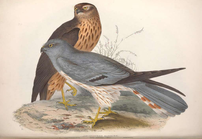 Pareja de aguiluchos cenizos. Autor: John Gould (1804-1881).