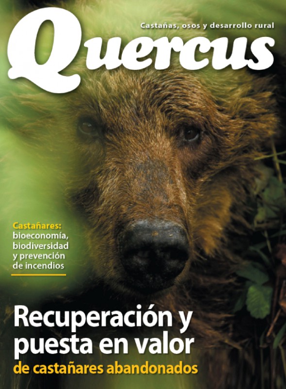 El castaño es una especie autóctona del noroeste ibérico y sus bosques, hábitat de interés comunitario, afrontan con buenas perspectivas el cambio climático. Mientras tanto, la expansión del oso pardo en la Cordillera Cantábrica y su mayor actividad invernal aumentan la importancia de la castaña en su dieta. Sin embargo, muchos castañares tradicionales han sido abandonados, especialmente en Asturias. El proyecto "Castañas, osos y desarrollo rural", impulsado por la Fundación Oso Pardo, al que dedicamos una separata especial en Quercus 478 (diciembre 2025), impulsa la recuperación del bosque, la plantación de miles de castaños autóctonos y la generación de empleo verde y conocimiento replicable.
