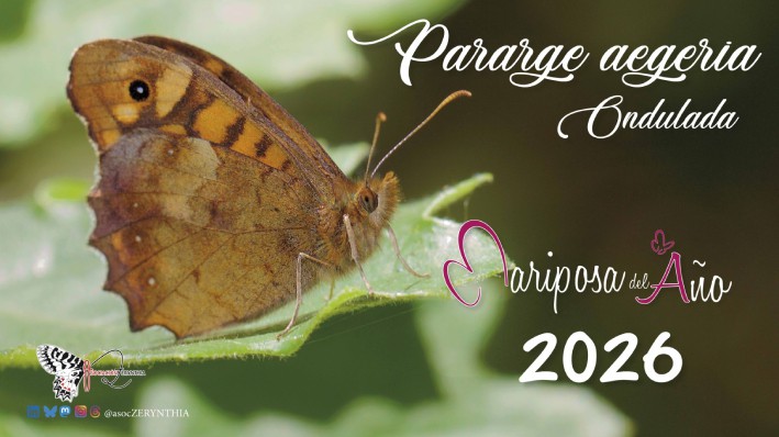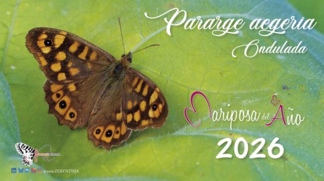 La Asociación Española para la Protección de las Mariposas y su Medio (Zerynthia), entidad pionera en España en el estudio, la conservación y la divulgación de los lepidópteros, ha designado a la mariposa ondulada (Pararge aegeria) como “Mariposa del Año 2026” a través de una votación abierta al público en enero pasado. La elección se enmarca en la undécima edición de esta iniciativa, que desde 2016 selecciona anualmente una especie de lepidóptero, diurno o nocturno, como eje central de acciones de divulgación, seguimiento y sensibilización ambiental que desarrolla esta entidad.