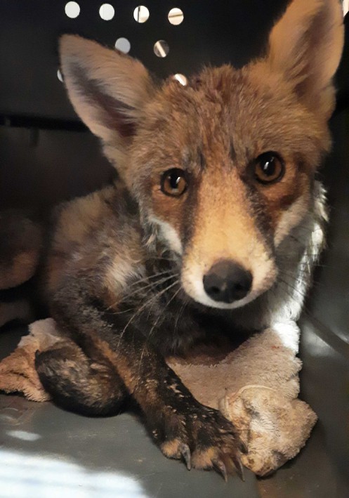Zorro rescatado tras quedar atrapado en una valla.