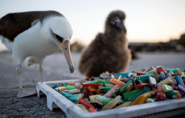 Basura de plástico arrastrada a la orilla en la isla de Laysan, en el archipiélago de Hawái (foto: Susan White/USFWS).