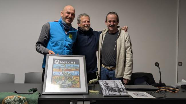 En la tarde del pasado sábado 31 de enero, después de presenciar la entrada de las grullas a sus dormideros, tuvo lugar el acto de entrega del premio Grullero Mayor 2026 en el Centro de Visitantes de la Laguna de Gallocanta. Fue recibido por Rafael Serra, director de Quercus, de manos de Javier Mañas, alcalde de Gallocanta. El premio consistió en una preciosa estatuilla de bronce del escultor aragonés Alberto Gómez Ascaso, una serie numerada de la que ya quedan muy pocas unidades.